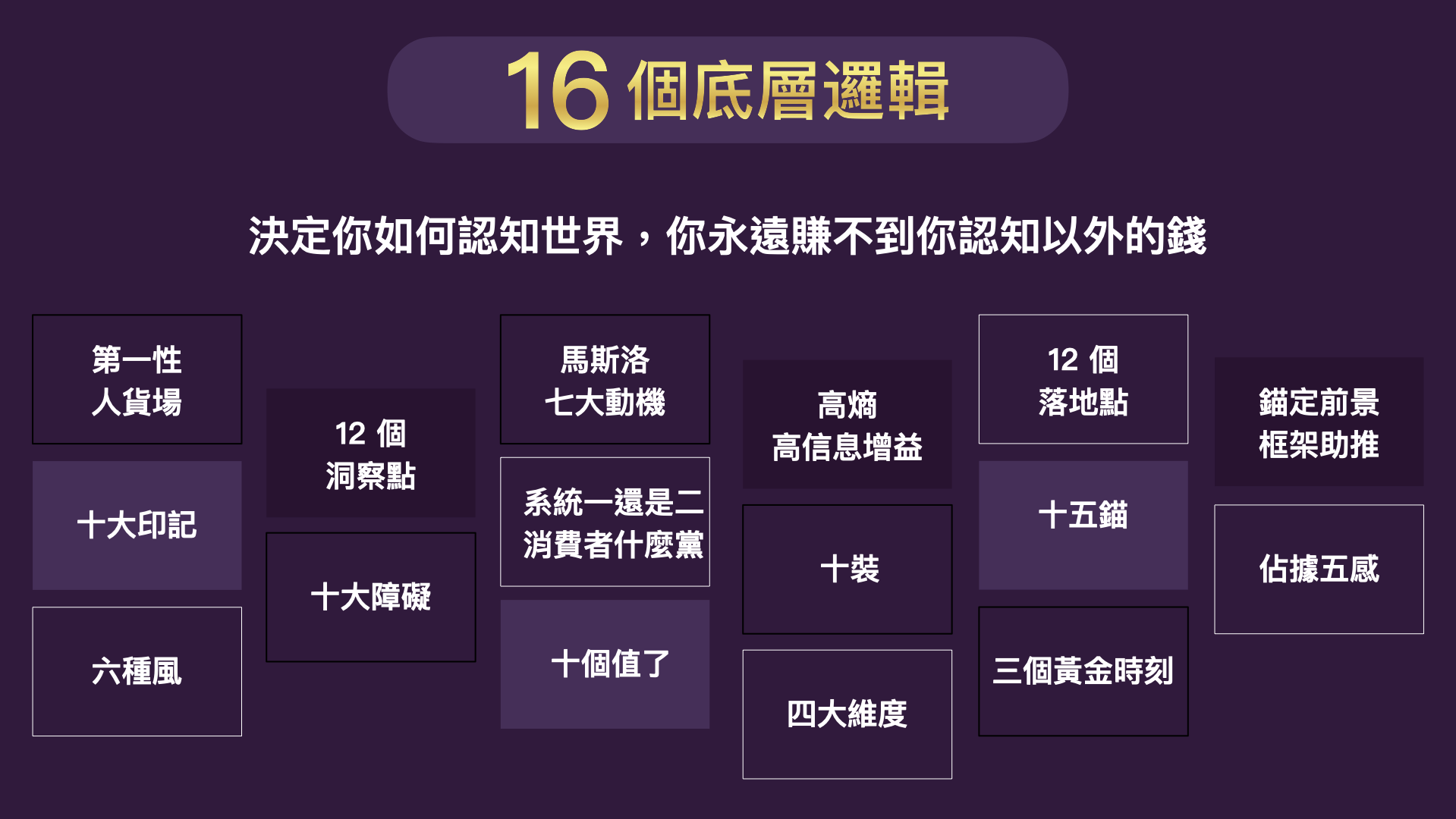 課程中除了品牌商業戰略的「三複四效」、「策略五要」、AI浪潮下「九大變現」要素之外